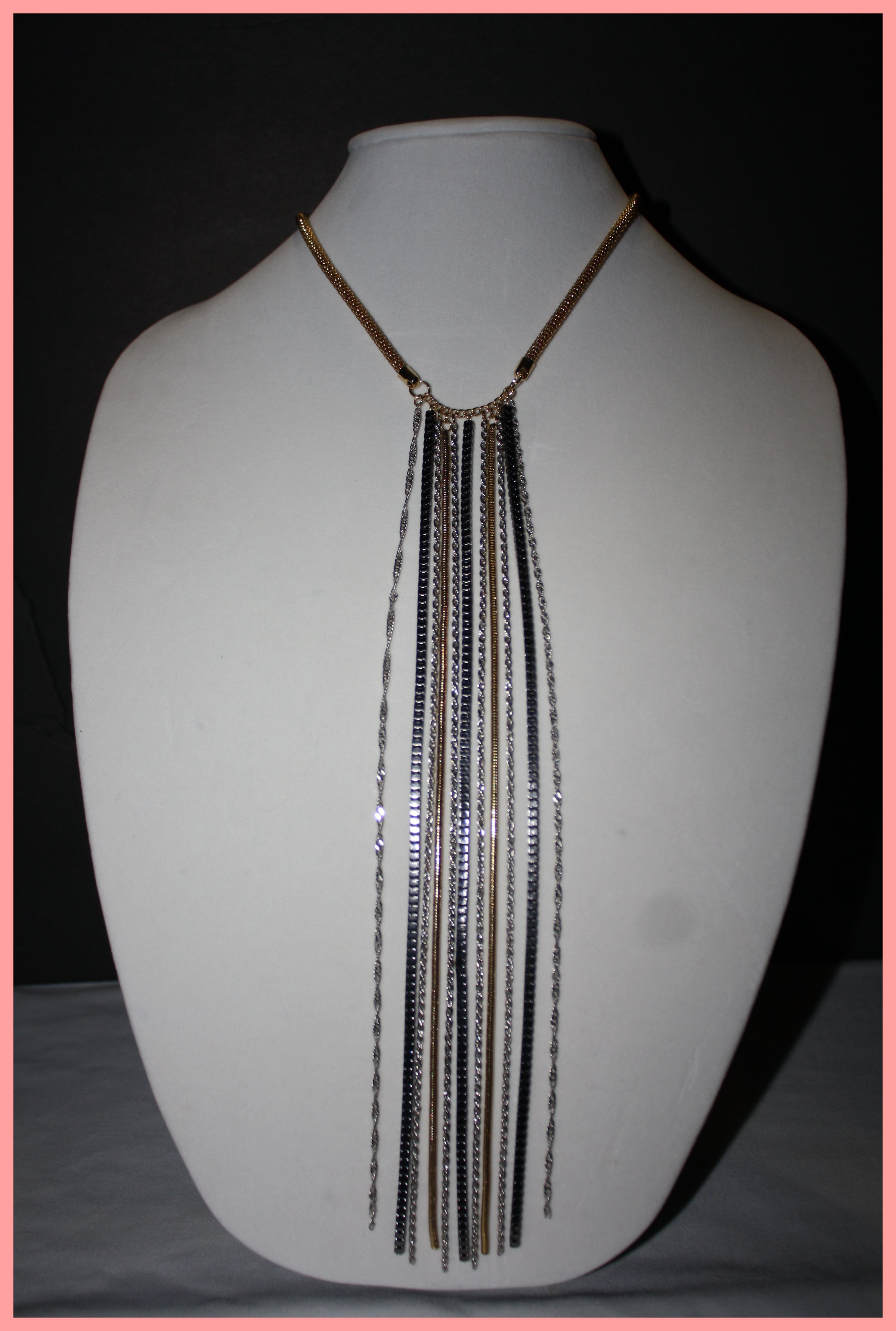 This is a silver and gold drop down necklace with chain detail...pair it up with your favorite outfit!
