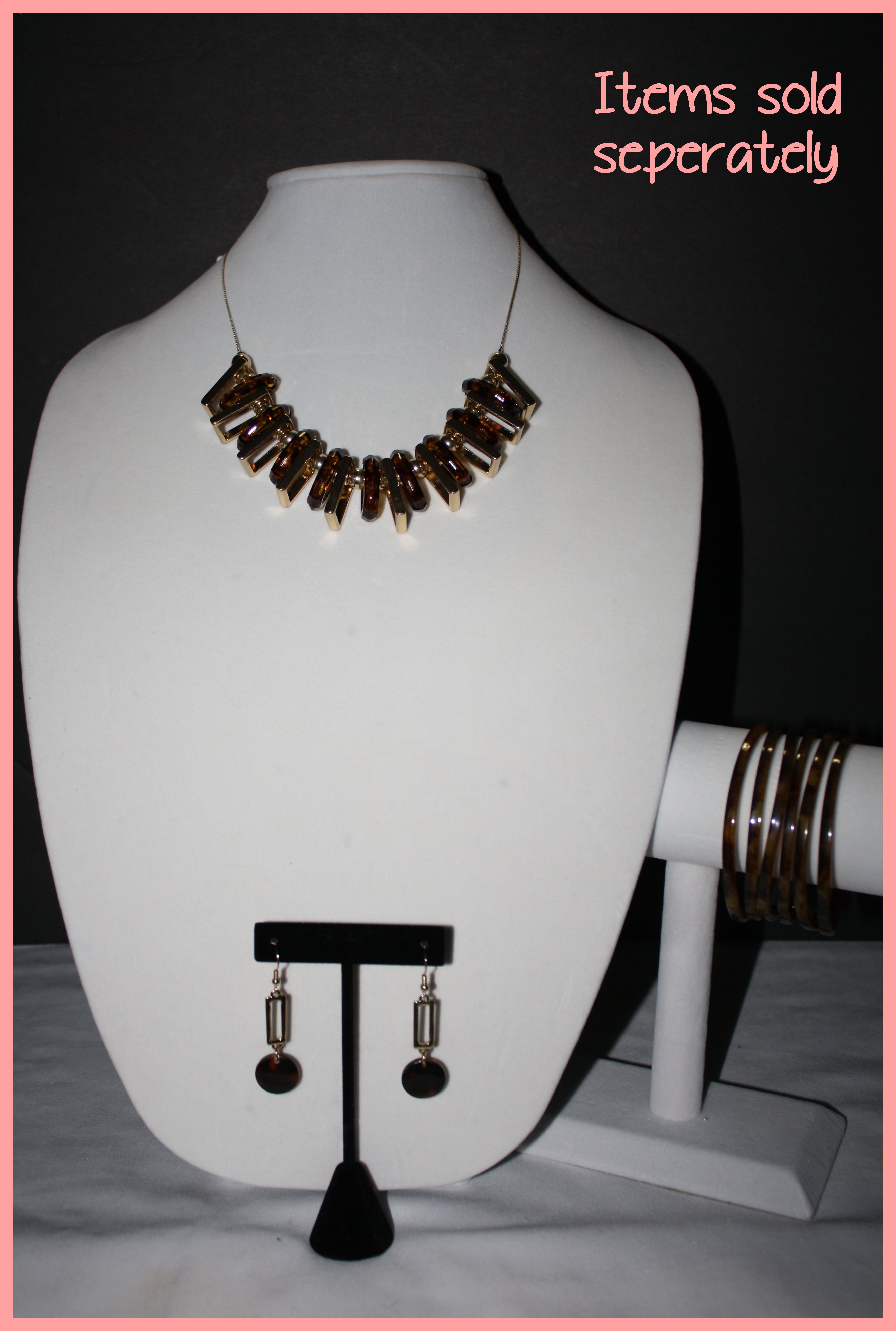 These stunning Gold & Tortise earrings will make any Diva the center of attention. You will be noticed when wearing these beauties. Pair them with the matching necklace & bracelets (sold seperately).