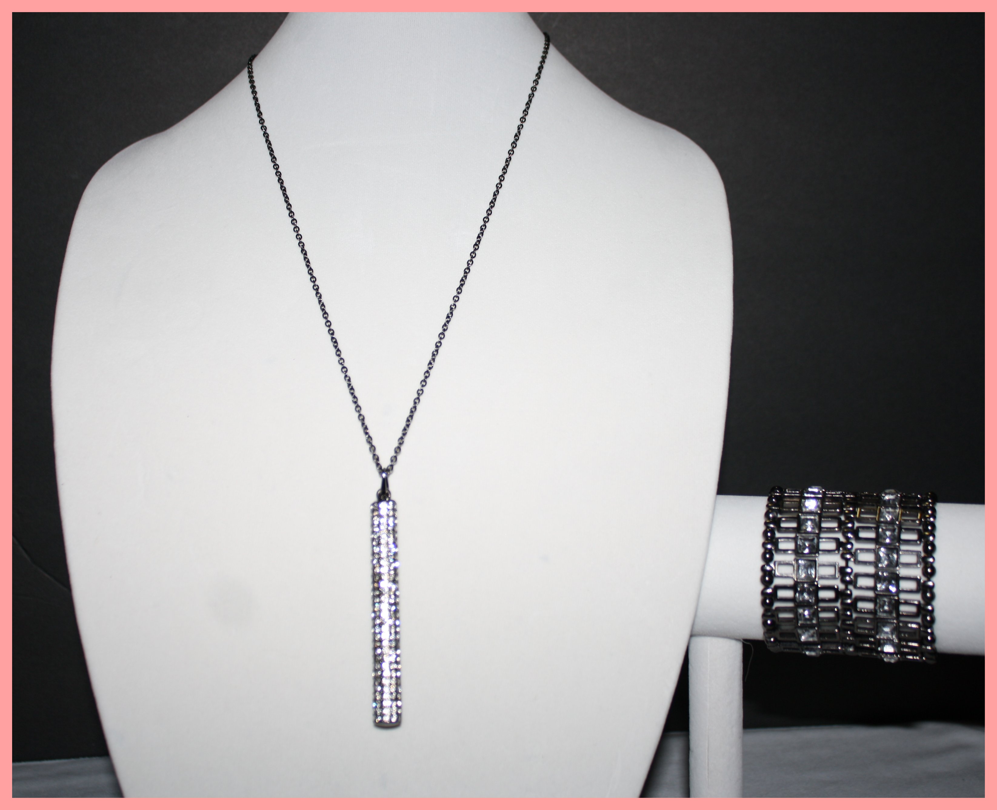 Gun Metal Bling Drop Necklace with matching Bracelet