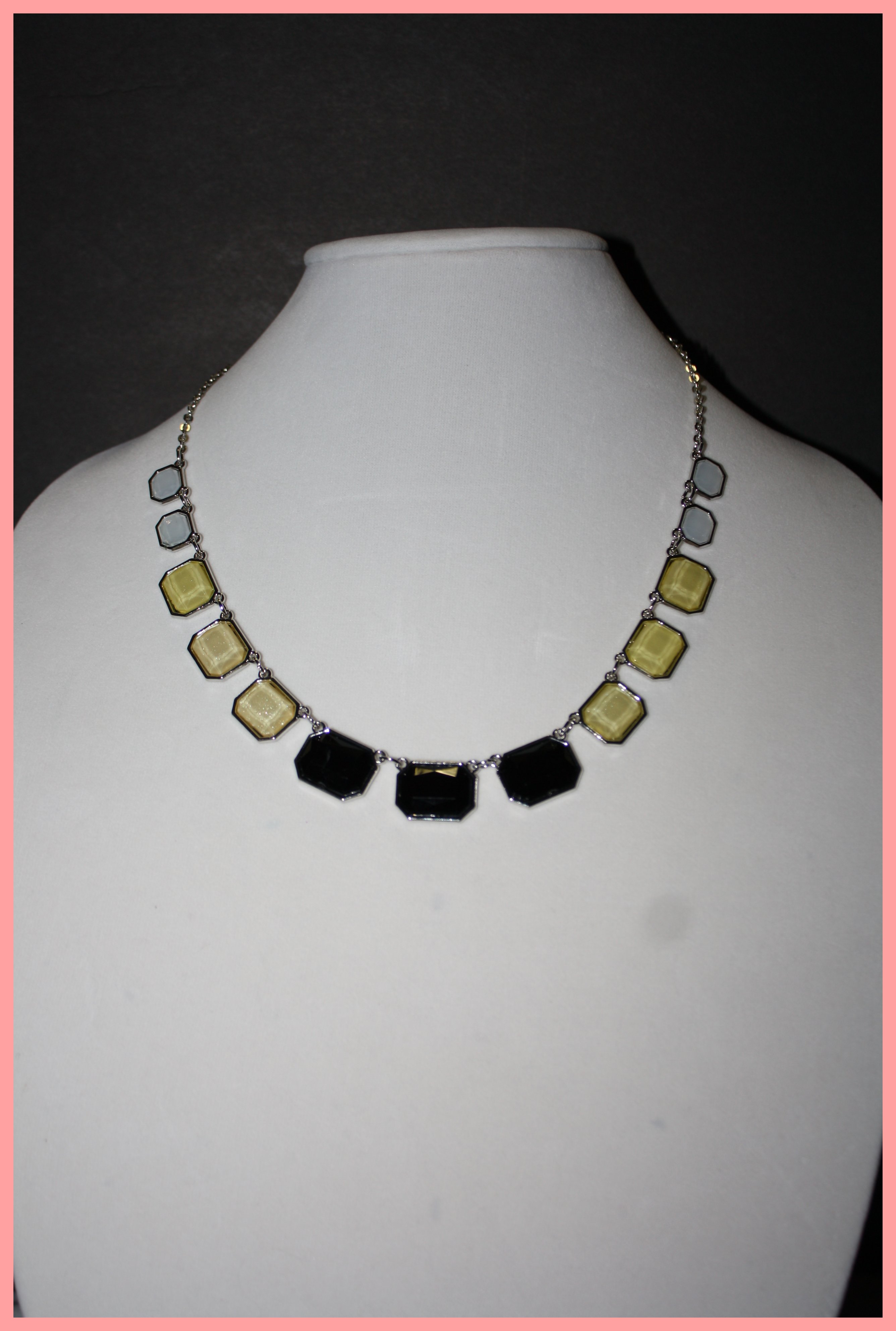 This is a beautiful yellow,black, & white squares necklace.