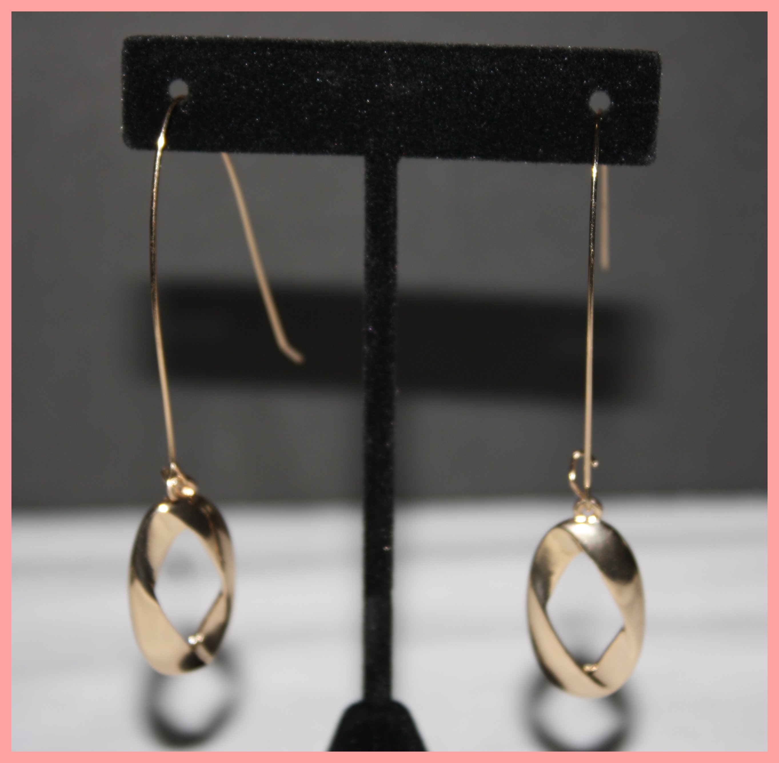 Gold Oval Twist Drop Earrings